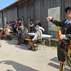 Viele Menschen waren zu Fuß oder mit dem Rad unterwegs, um an verschiedenen Stationen das bunte Treiben zu erleben. Das Interesse sowohl an den Führungen zum geschichtlichen Hintergrund der wichtigen Episode aus dem Dreißigjährigen Krieg und den Kräuterwanderungen am Hainberg war genauso groß wie beim Ponyreiten auf dem Oberasbacher Hölzleshof oder beim Bogenschießen mit den Oberasbacher Feld- und Jagdbogenschützen am Steinbrüchlein. Es wurden Stoffe wie in alten Zeiten gefärbt, Besucher konnten beim Oberasbacher Heimatverein u.a. historische Kinderspiele ausprobieren oder in Zirndorf der Musik der Stadtjugendkapelle oder von Pavel Sandorfs Swing Ding lauschen. Das Regiment Jung-Tilly an der Alten Veste und die ebenso zeitgemäß kostümierten „Wallensteinerinnen und Wallensteiner“ aus Altdorf mischten sich an veschiedenden Stationen unter die Besucher und standen als beliebtes Fotomotiv mit Freude zur Verfügung.
