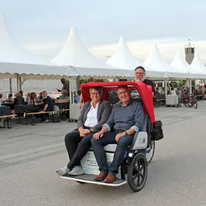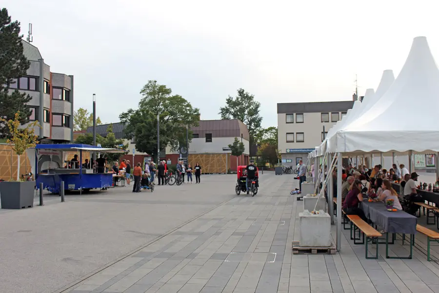 „Es ist uns heute wieder sehr präsent, wie wichtig es ist friedlich miteinander auszukommen, im Großen wie im Kleinen. Deswegen freut es mich sehr, dass so viele Menschen hier zusammenkommen und miteinander teilen, was sie mitgebracht haben. Essen verbindet!“ Mit diesen Worten lud Birgit Huber, Erste Bürgermeisterin der Stadt Oberasbach, dazu ein, den abwechslungsreichen Tag bei einer gemeinsamen Friedenstafel am Rathausplatz ausklingen zu lassen. Unter den über 250 Gästen des von der Stammtischgesellschaft Unterasbach unterstützten Abschlussevents eines tollen Festival-Tages waren u.a. auch die Bürgermeisterkollegen aus Stein, Kurt Krömer, und Zirndorfs Dritter Bürgermeister Walter Schäfer.