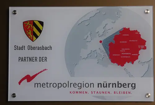 „Stadt Oberasbach – Partner der Metropolregion Nürnberg“! Ein neues Schild mit diesem Aufdruck schmückt jetzt das Oberasbacher Rathaus.