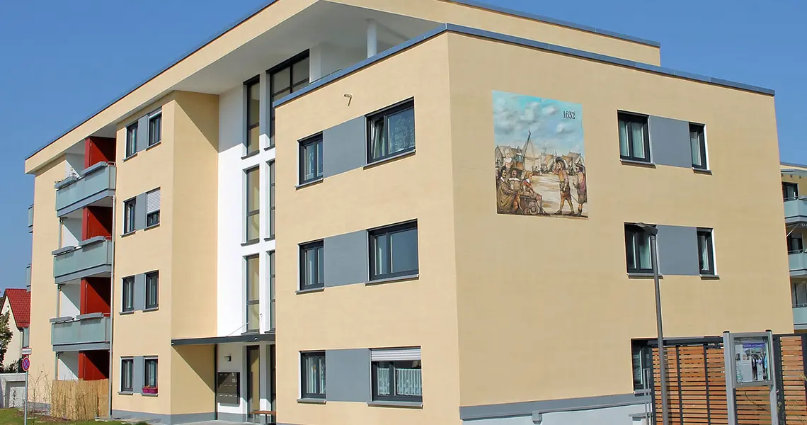 Das Wallenstein-Gemälde des ungarischen Künstlers Belá Faragó ist das jüngste Wandgemälde in Oberasbach. Sie finden es, von Süden her kommend, auf dem 2018 mit 38 Wohneinheiten fertiggestellten Mehrfamilienhaus in der Lilienstraße 7a.