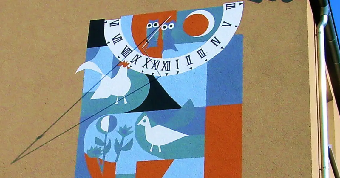 Aus dem Jahr 1960 stammt das Wandgemälde auf der Giebelfassade am Lilienplatz 9. Die Sonnenuhr gilt in allen Kulturen als das erste Zeitmessinstrument. In der Formensprache der 50er- bzw. 60er-Jahre symbolisieren hier die jeweiligen Vögel den Wechsel von Tag und Nacht. Der Künstler Hannes Wiedemann, ehemals Professor an der FH Nürnberg und freiberuflicher Dekorationsmaler und Restaurator, ist bekannt für seine Wand- und Deckengemälde, die er für kirchliche oder kommunale Auftraggeber fertigte.