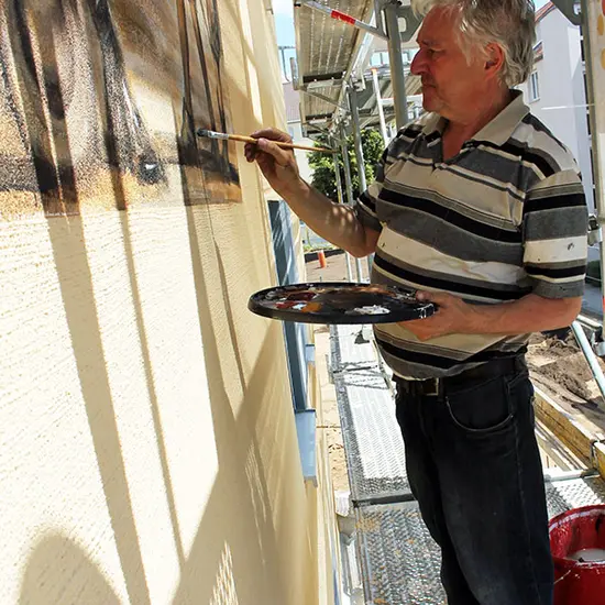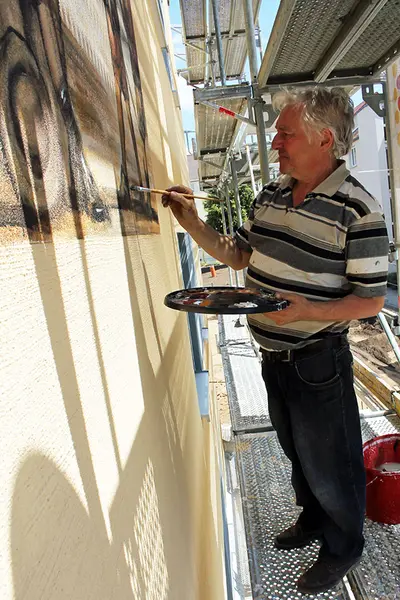 In der sogenannten Nachkriegskunst findet man beispielsweise auf den Gebäuden der Wohnungsgenossenschaften häufig Szenen aus der Zeit des Wiederaufbaus: Handwerker mit Spaten und Eimer, Mütter mit Kindern und Menschen, die hoffnungsvoll miteinander ihre Zukunft anpacken. Manche Wandverzierungen stammen sogar noch aus den Anfängen des genossenschaftlichen Wohnungsbaus. Bei Sanierungen verschwanden häufig solche Kunstwerke hinter dem neuen Putz. In jüngerer Zeit legt man allerdings wieder großen Wert auf die Pflege des historischen Bestands. So fand man beispielsweise in Fürth bei Renovierungsarbeiten sogar Verzierungen aus der Jugendstil-Epoche um 1900. Gut, wenn sich in solchen Momenten ein Restaurator vor Ort für den Erhalt dieser historischen Kleinode einsetzt.