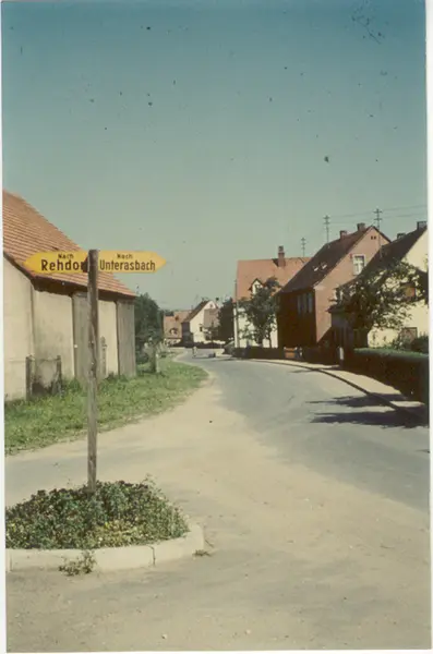 Die Jahnstraße – als Verbindung von Unterasbach mit dem Altort – endet an der Kreuzung und geht als Roßtaler – früher Rehdorfer – Straße in Richtung Rehdorf weiter.