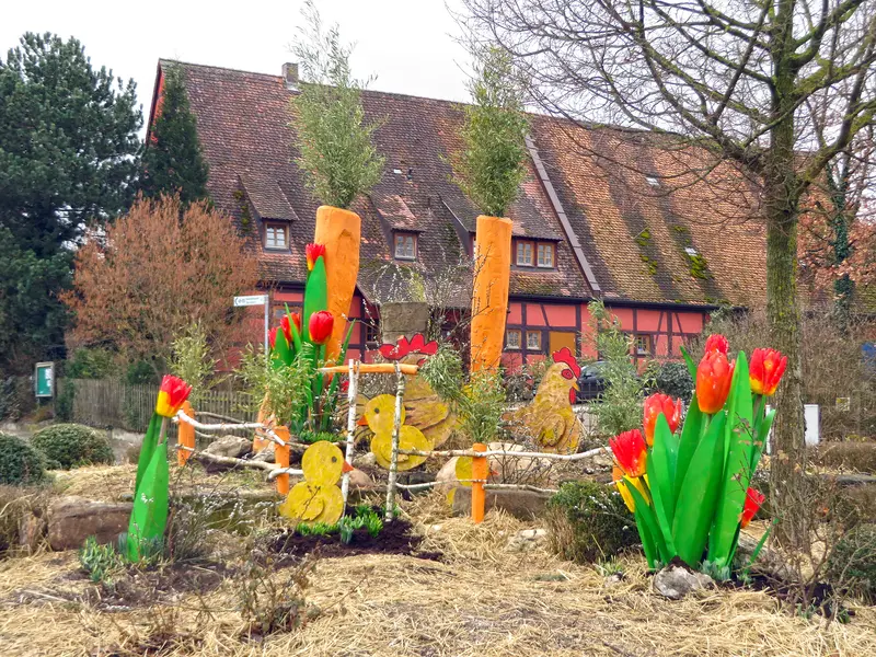 Echte Hingucker sind die Mittelinseln der beiden Kreisverkehre – wie übrigens die städtische Deko insgesamt, die über die Jahre in engagierter Kleinarbeit und mit viel Kreativität von Mitarbeitern des Bauhofs entworfen und selbst gefertigt worden ist. Dreimal im Jahr gibt es Neues in den "roundabouts", die man im wörtlichen Sinn am liebsten mehrmals umkreisen würde, solche Schmuckstücke sind sie.