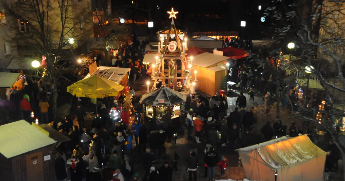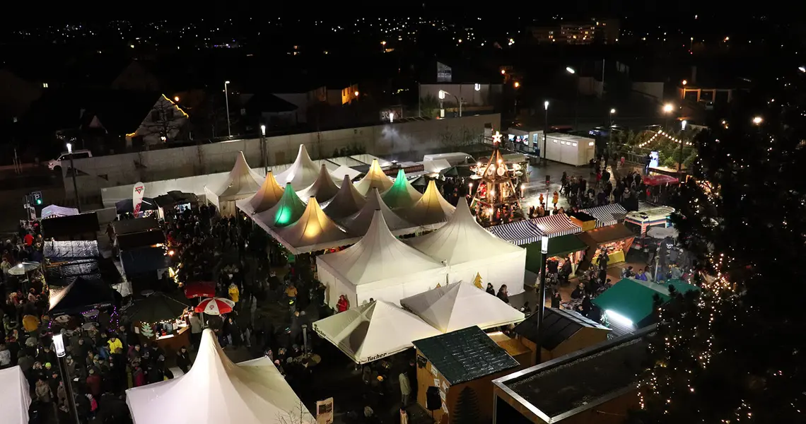 Mit der Fertigstellung des Multifunktionsplatzes an der Nordseite des Rathauses ist 2018 auch der Weihnachtsmarkt, der viele Jahre um den Brunnen auf der Südseite herum angeordnet war, wieder umgezogen. Ebenfalls am neuen Standort bekamen die Partnerstädte, die alljährlich eigens zum Weihnachtsmarkt mit einer Delegation anreisten und ihre Spezialitäten und Köstlichkeiten feilboten, ein neues Zuhause in den weißen Partnerschaftszelten. Vorher waren sie im Rathausfoyer zu finden.
