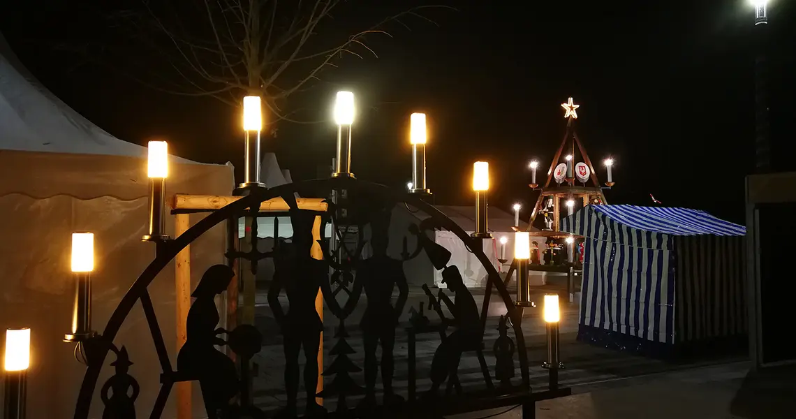 Der Weihnachtsmarkt ist ein wenig älter als die Stadt selbst. 1984, 10 Jahre vor der Stadterhebung, schlossen sich erstmals Vereine, Verbände, Hobbykünstler und weitere Gruppierungen zusammen und sorgten mit teils noch provisorischen kleinen Ständen für weihnachtliche Atmosphäre im Ortszentrum. Seit 1985 ist die kleine Budenstand am zweiten Adventswochenende zur festen Einrichtung am Rathausplatz geworden. Dieses Jahr kann die Veranstaltung leider nicht in dieser Form stattfinden. Mit einer kleinen Bildauswahl möchten wir dennoch an die festliche Stimmung erinnern, verbunden mit der Hoffnung auf einen wundervollen Weihnachtsmarkt 2021.