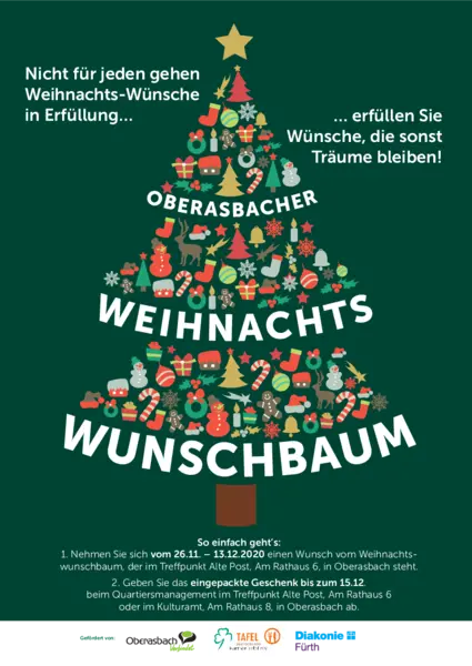 Mit dem Weihnachtswunschbaum, der ab 26.11.2020 im Eingangsbereich zum Treffpunkt Alte Post steht, kann für die Menschen der ein oder andere Wunsch erfüllt werden, die selbst weniger haben.