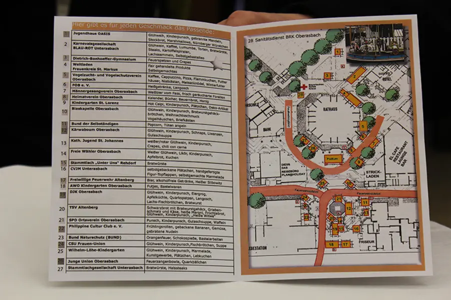 Von Beginn an war der Weihnachtsmarkt ein Markt der Oberasbacher Bürger. Es wurden und werden keinerlei gewerbliche Artikel verkauft. Stattdessen sorgen die circa 20 festlich geschmückten hölzernen Verkaufsstände für individuellen Flair. Zahlreiche Vereine, Verbände, Hobbykünstler und andere Gruppierungen bieten ein gut sortiertes Angebot an Gaumenfreuden, selbst Gebasteltem und weihnachtlichem Schmuck, an Traditionellem und Ausgefallenem. Für festliche Stimmung sorgten die verschiedenen Oberasbacher Chöre und Instrumentalgruppen. Der Weihnachtsmarkt lebt vom Engagement und der Mitwirkung vieler verschiedener Vereine und kirchlicher bzw. sozialer Gruppen.