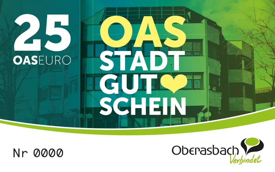 Der von der Stadt Oberasbach herausgegebene Oberasbacher Stadtgutschein wird nicht mehr verkauft. Sie können ihn jedoch noch bis Dezember 2027 einlösen!
