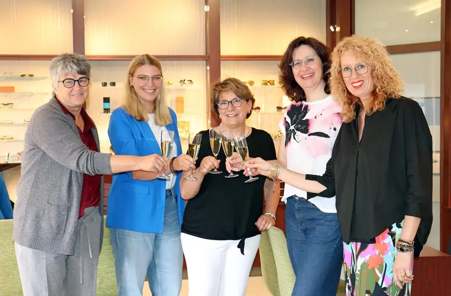 Zum 45. Jubiläum gab es für die Gäste ein Glas Sekt, eine Brillenreinigung per Ultraschall – und das Versprechen, auch das 50-jährige Bestehen noch gemeinsam zu feiern.