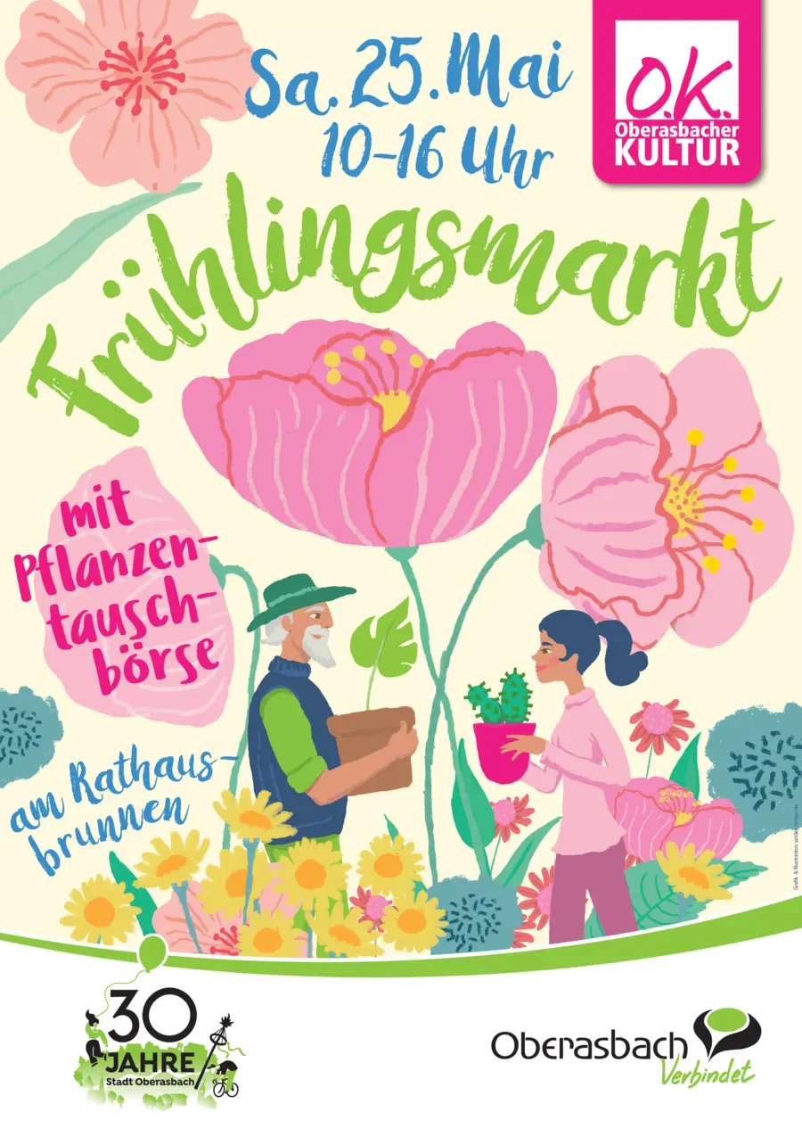 Am Samstag, den 25. Mai veranstaltet die Stadt Oberasbach erstmalig einen Frühlingsmarkt mit Pflanzentauschbörse rund um den Rathausbrunnen.