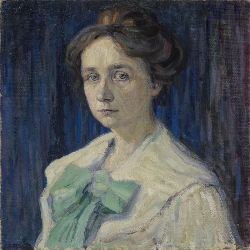 Als Kandinskys Lebensgefährtin hatte sie maßgeblichen Anteil an der Künstlergemeinschaft des „Blauen Reiters“. Es waren spannungsreiche Beziehungen zwischen den Mitgliedern dieser 1911 gegründeten Künstlervereinigung und die besondere Rolle der weiblichen Mitglieder war dabei nicht unwichtig. Gaben Elisabeth Macke (1888-1978) und Maria Marc (1867-1955) ihre eigene künstlerische Tätigkeit auf, um sich dem Talent ihrer Männer zu widmen, war die russische Künstlerin Marianne Werefkin (1860-1938) überzeugt, Trägerin einer revolutionären Kunstidee zu sein. Die mystische Verlobung mit ihrem „Kunst-Geschöpf“ Alexej Jawlensky war allerdings zum Scheitern verurteilt.