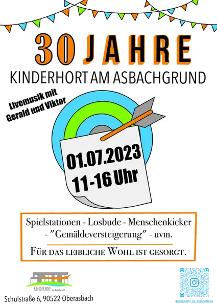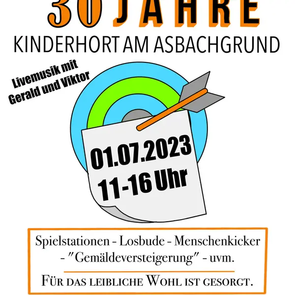 Am Samstag, 1. Juli 2023 feiert der städtische Kinderhort am Asbachgrund sein 30-jähriges Bestehen. Herzlich willkommen!