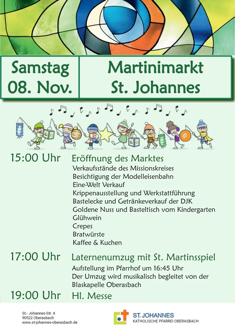 Am Samstag, 8. November lädt der gemütliche Martinimarkt von St. Johannes zu Glühwein, Crêpes, Bratwürsten, Kaffee und Kuchen und mehr im Pfarrhof ein.