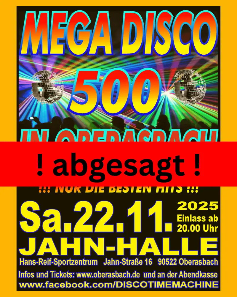 Leider abgesagt: Mega Disco 500 in Oberasbach