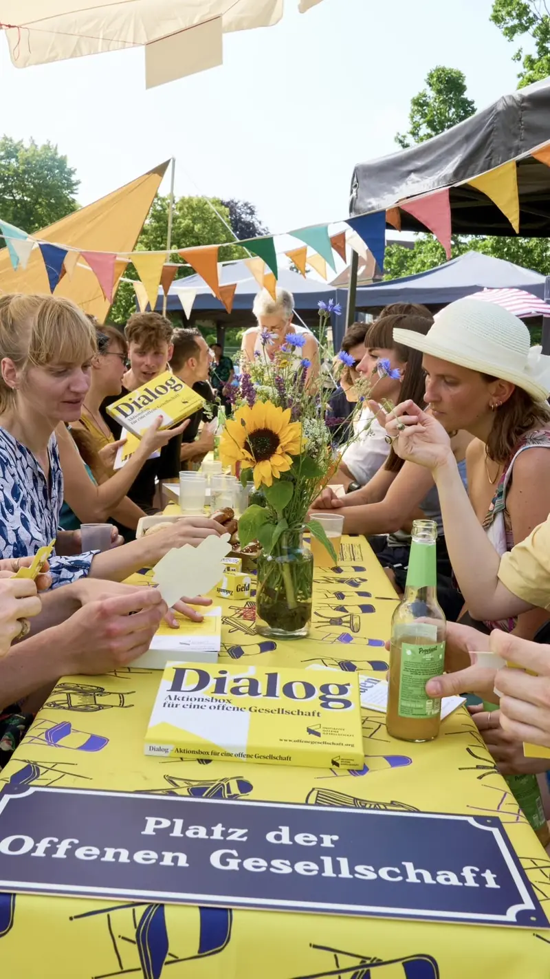 Der Tag der offenen Gesellschaft ist ein bundesweiter Aktionstag am 15. Juni 2024. Jährlich stellen Menschen bundesweit “Tische und Stühle raus” und senden ein ermutigendes Signal für eine offene, demokratische Gesellschaft.