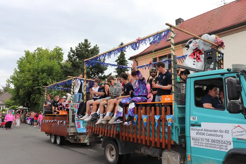 Am Sonntag, den 28. Juli startet der Umzug pünktlich um 14.00 Uhr in der Schwabacher Straße und führt über Locher Weg - Hauptstraße – Winterstraße – Frühlingstraße – Jahnstraße – Bahnhofstraße – Fliederstraße – Lilienstraße –Steiner Straße – Bahnhofstraße – Hauptstraße bis zur Auflösung in der Frühlingstraße/ Herbststraße gegen 15.00 Uhr.