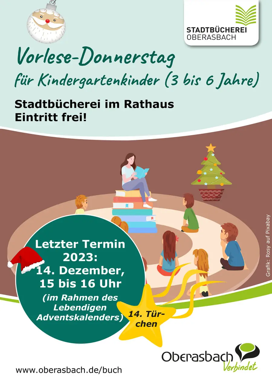 Der erste Vorlese-Donnerstag 2024 findet am 25. Januar statt, los geht es dann wie immer um 15.00 Uhr. Alle Termine des Lebendigen Adventskalenders finden Sie hier.