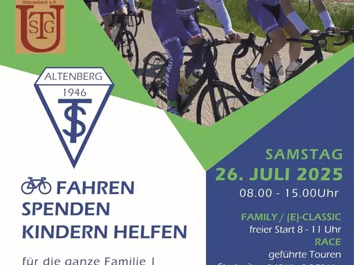 Zur Kirchweih Unterasbach organisiert die Radsportabteilung des TSV Altenberg – gemeinsam mit der Stammtischgesellschaft Unterasbach e.V. – am 26. Juli wieder ein Charity-Rad-Event zugunsten der Kinder- und Jugendklinik Erlangen.