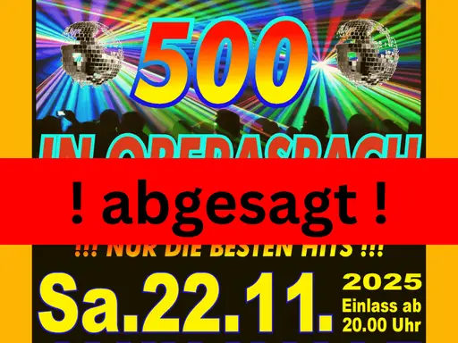 Die Megadisco am 22. November muss leider abgesagt werden. Wir hatten uns sehr darauf gefreut, mit Ihnen zu feiern, können das Event aber nicht in dieser Form durchführen. Die Tickets können zurückgegeben werden, bei Fragen wenden Sie sich bitte an kulturamt@oberasbach.de. Wir suchen bereits nach einem Ersatztermin und informieren Sie, sobald es Neuigkeiten gibt.